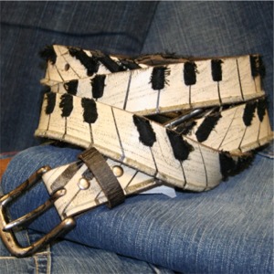 Leather Island vintage "Piano" soft weathered leather 38mm soft leather raised black embroidered keys on belt $75